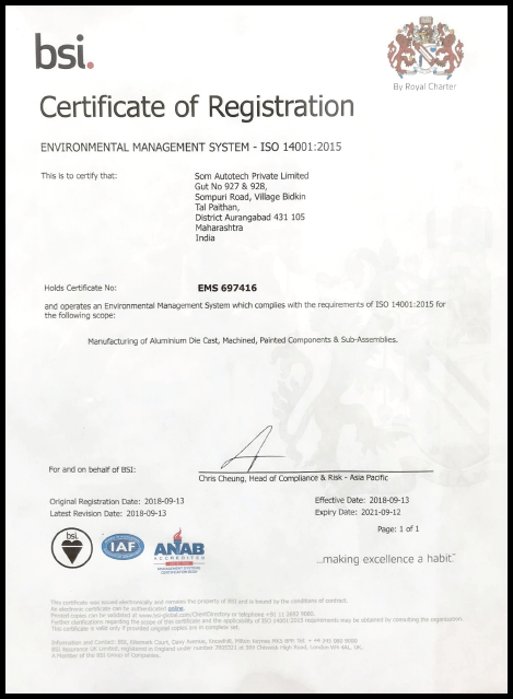 SOM intends to become a complete solution provider in Aluminum alloys, components and assemblies, produced by casting machining and surface treatment processes. SOM shall thrive to graduate in designing and developing products and systems, leveraging the core strength of Aluminium foundry and precision machining. Will always take pride in economic success, through application of intellectual strengths than volumes and scales. SOM shall build products and brand image in the global market.